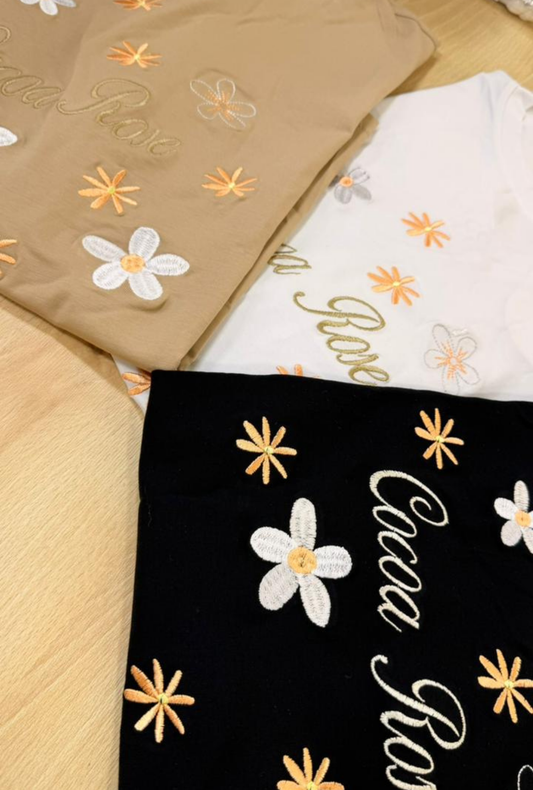 Camiseta Oversize en Tela Fría con Bordado Cocoa Rose