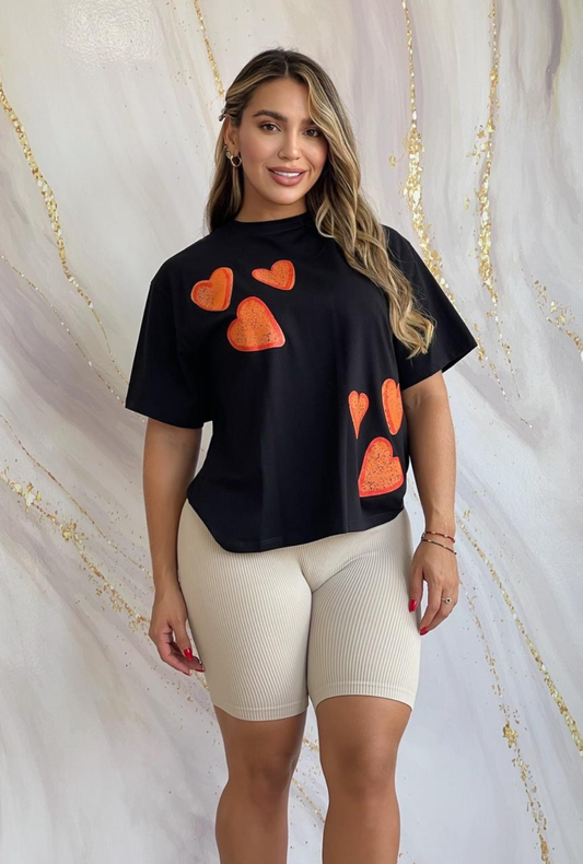 Camiseta Oversize con Estampado de Corazón