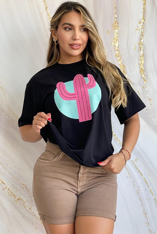 Camiseta Oversize con Estampado de Cactus