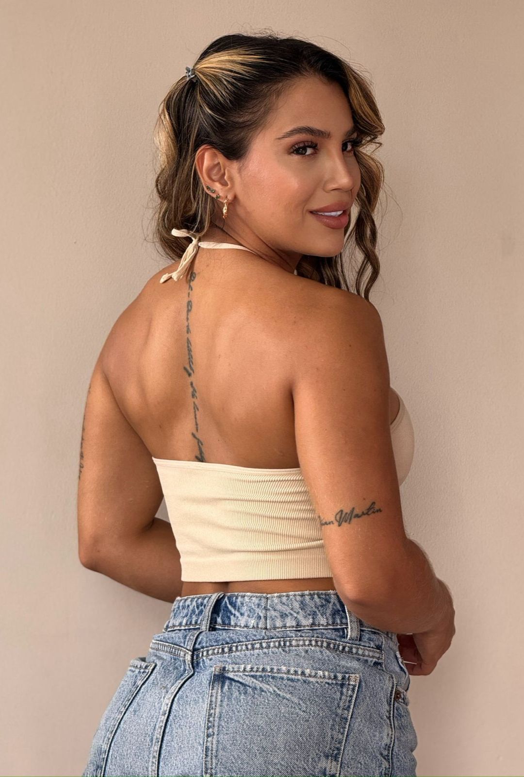 La Alora es una blusa que habla con elegancia y actitud. Su escote profundo con tiras tipo swimwear aporta un toque sexy sin perder la sutileza, ideal para elevar cualquier look con confianza y estilo.